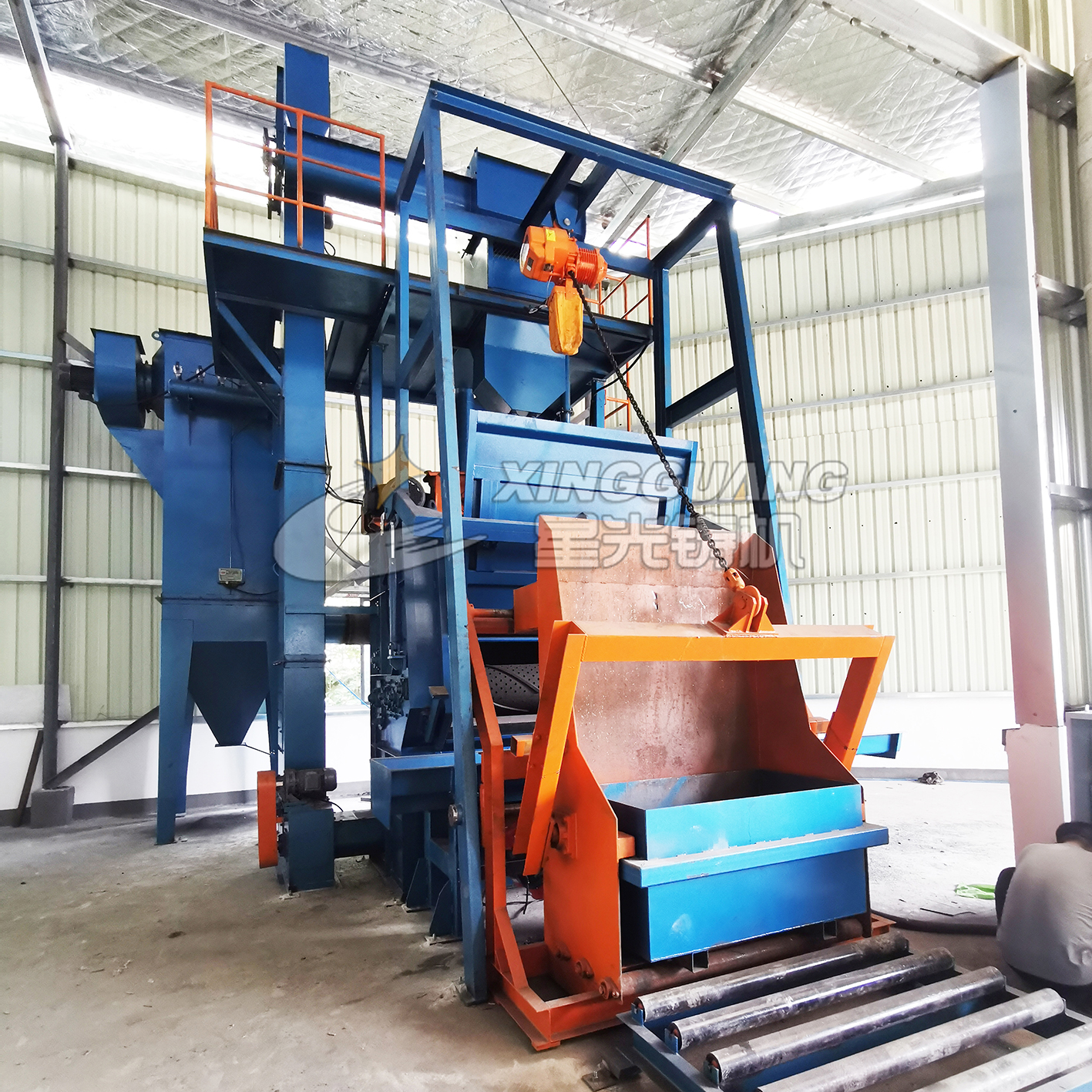 采用滾筒機構,配置高效拋丸器,鋼丸在投射中,滾筒可回轉、上下搖動,工件攪拌不撞擊,彈丸投射均勻。可處理細小薄件、有卡住可能的特殊工件。滾筒機構采用液壓控制,設備工作過程平穩,定位精確。它適用于各行業中...…